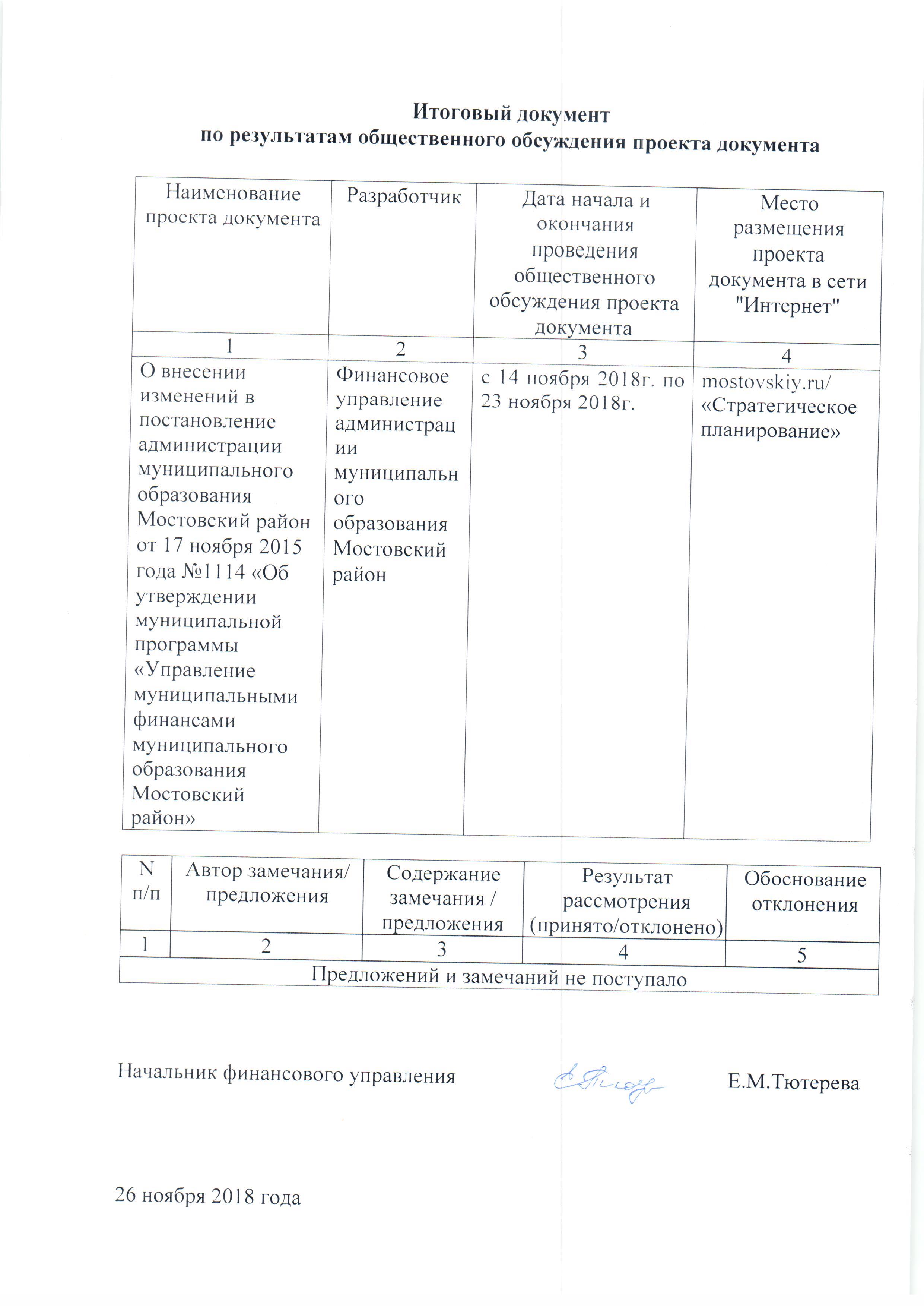 ПРОЕКТ ПОСТАНОВЛЕНИЯ "О внесении изменений в постановление администрации муниципального образования Мостовский район от 17 ноября 2015 года № 1114 «Об утверждении муниципальной программы «Управление муниципальными финансами муниципального образования Мостовский район»»"